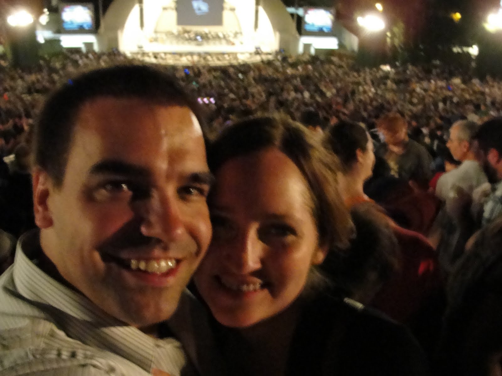 Jesse and I finally made it to Hollywood Bowl...and for a great event too! We went to the annual John Williams event when the LA Philharmonic plays the music of the movies and John Williams conducts. We heard familiar scores from Star Wars, Harry Potter, Indiana Jones, and lots of others. The audience was entertaining as well (see below). Before the performance, we had a picnic dinner on the grounds with friends and made a whole evening of it.